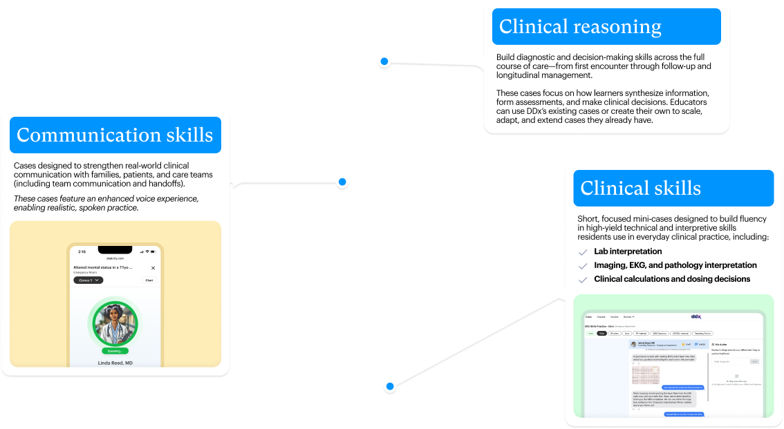 DDx ensures every learner builds a strong clinical reasoning foundation and encounters the full range of presentations they need — regardless of preceptor bandwidth or site availability.